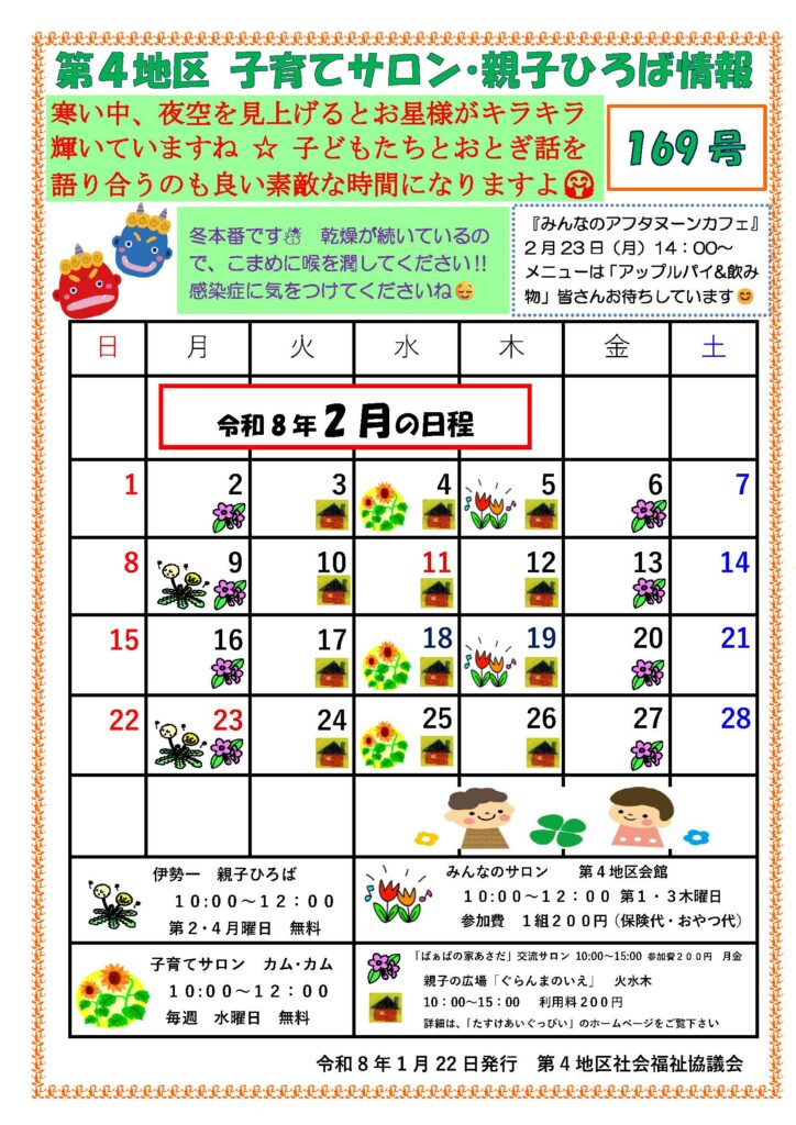 【第4地区】2月子育てサロン・親子ひろば情報